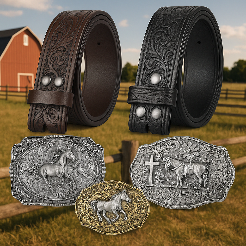 Built for those who love the horse spirit โ rugged, loyal, and free. Handcrafted leather and iconic buckles that tell the story of the West.